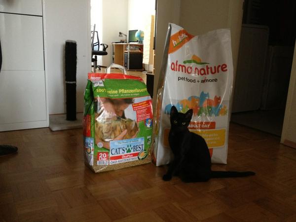 Трабл в том, что котика Бо ЖРЁТ. То есть Тэ поест там 5 штучек корма и уйдет, через часик ещё 5 штучек.